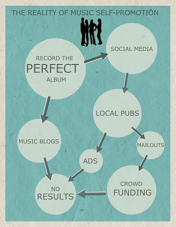Self-promotion in the music industry is a topic that has been explored extensively over the past 20 years. Some of the basic ground rules are the same that apply to any business or freelancer. Most people in the industry, however, bands included, don’t know a whole lot about it. Many prefer to hover around the topic of social media because it’s all they know. After all, once you call yourself a “social media coach”, there’s really not much room for expansion besides posting an analysis of every new Twitter or Facebook development/etc. Artists flock to new music technologies, discovery platforms, unsigned networks, indie authorities, and crowd funding platforms looking for the answer, and yet, the message generally being sent to the artists tends to do them a disservice. Promises, promises. Even the term “submit your music” can be very misleading. Submit it where? Well…the junk folder, to be blunt.